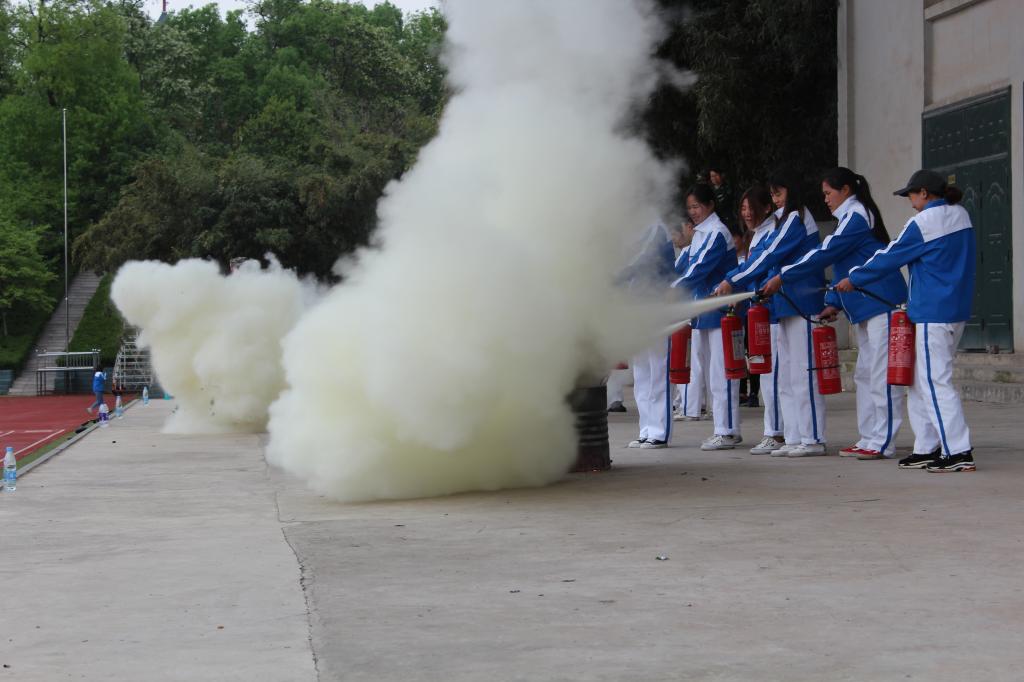 疏散演练过程中,同学们按要求掩住口鼻、弯着腰按规定路线迅速下楼,到达安全地带。疏散完毕后,又将参加演练的学生集中在运动场现场演示了灭火器的使用方法,并让部分学生亲手操作使用灭火器,确保学生正确掌握灭火器操作方法。