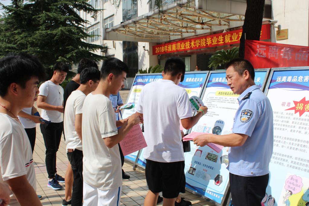 为进一步加大学校禁毒宣传教育工作力度,使大学生认识毒品的危害,增强自我保护意识,预防毒品犯罪,6月25日下午,保卫部联合淮南市田家庵区禁毒委和洞山派出所、洞山街道禁毒办以及校党委工作部、学生处、团委等单位在图书馆广场开展集中宣传活动。