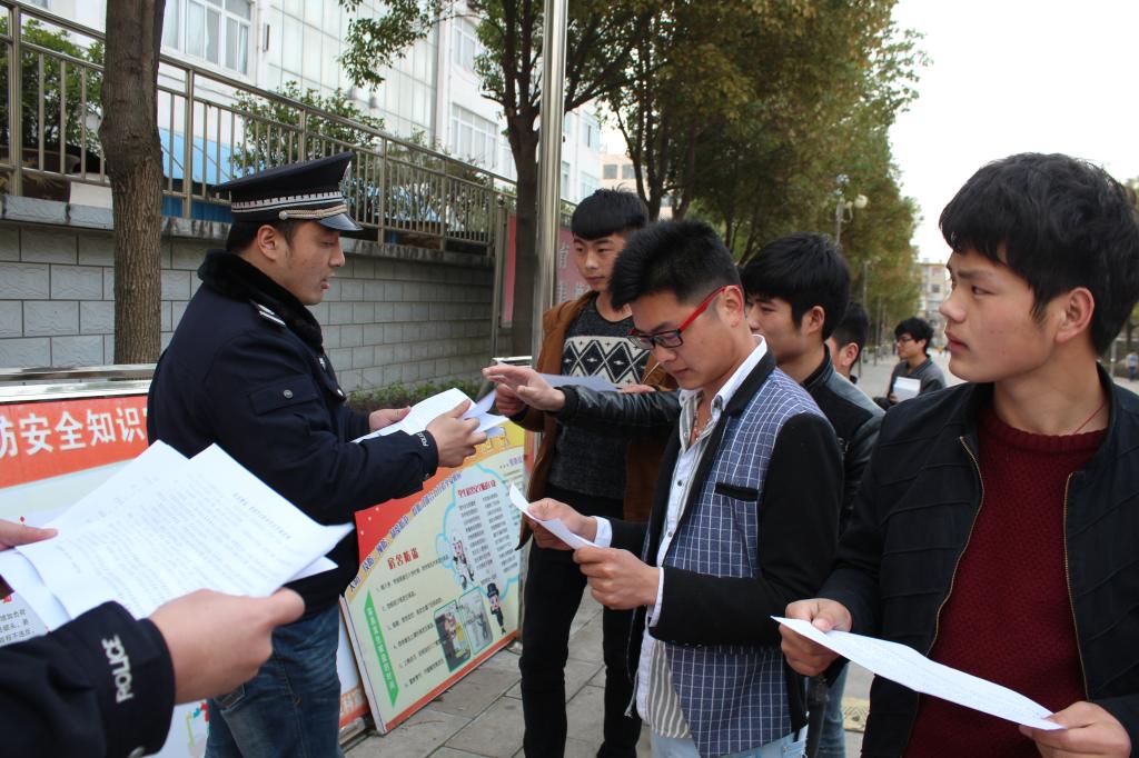 淮南市田家庵区公安分局洞山派出所在综治宣传月活动期间,专门来学院与保卫科联合开展赃物返还及法制宣传大会活动,并向大学生发放防范诈骗、防盗等宣传资料300余份,教育学生增强自我保护意识,提高防范能力。